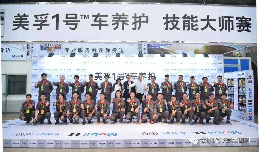 2017年美孚1號車養(yǎng)護技能大師賽前三名技師合影